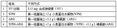 本研究設立了4組干預方式,探究ARG+WPH聯(lián)合使用對NV產(chǎn)生的飽腹感效果影響。