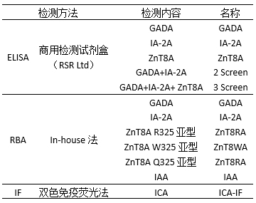 IA-2A RBA的靈敏度為78%。GADA RBA的加入提高了12%靈敏度,將該方法學整體靈敏度提高至90%,而ZnT8A RBA (R/W/Q中的任何一種)的加入使靈敏度進一步提高到 91%。相比之下,添加IAA和ICA-IF結果并沒有比使用其他檢測方法獲得更高的靈敏度(表1)。